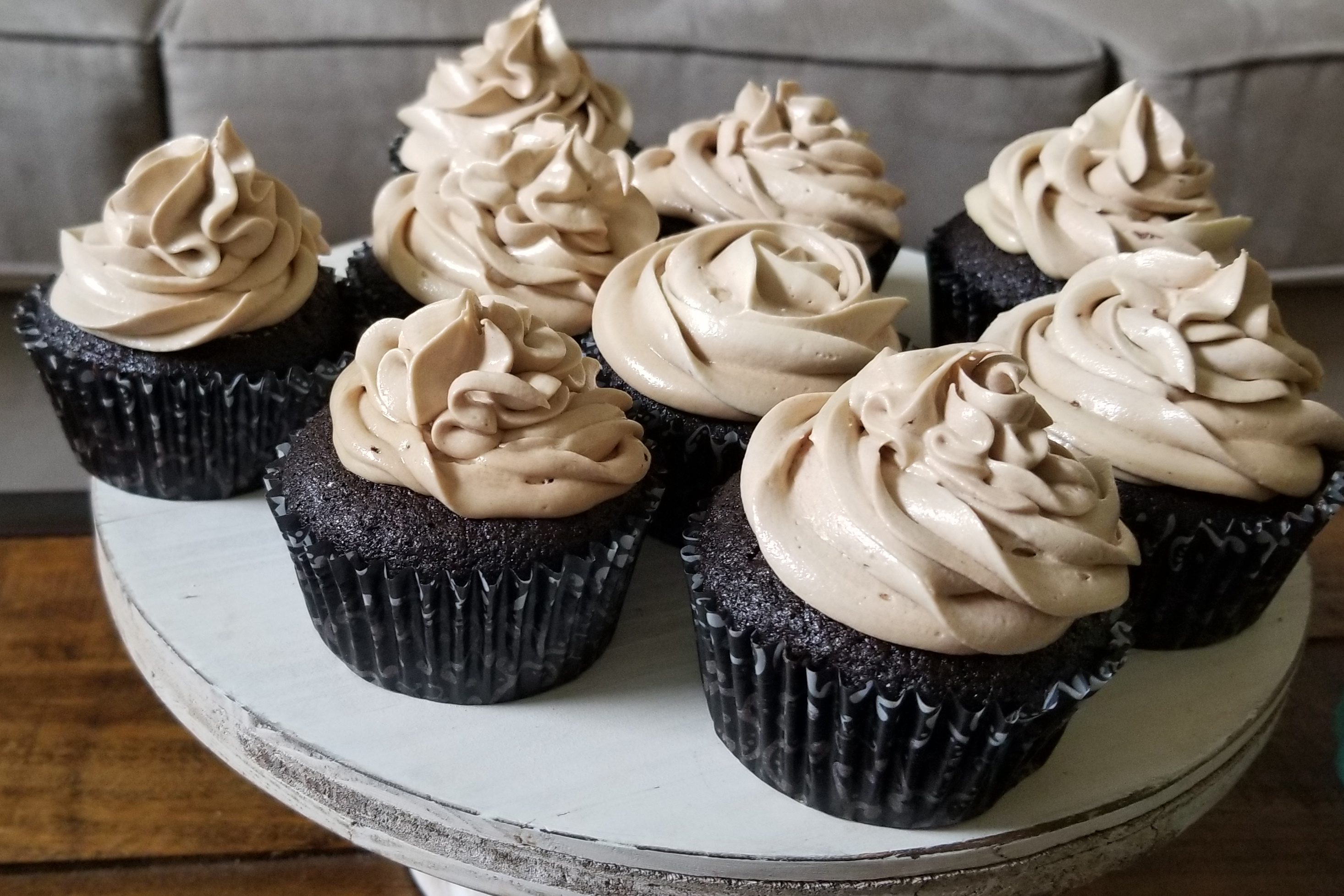 - Frosting: Bring water to a boil and add espresso powder. Reduce to a simmer and stir until espresso powder has completely dissolved. Let cool. Using an electric mixer, beat butter, powdered sugar, and cocoa powder on medium speed until frosting is light and fluffy. Add 3-4 Tablespoons of the espresso mixture.